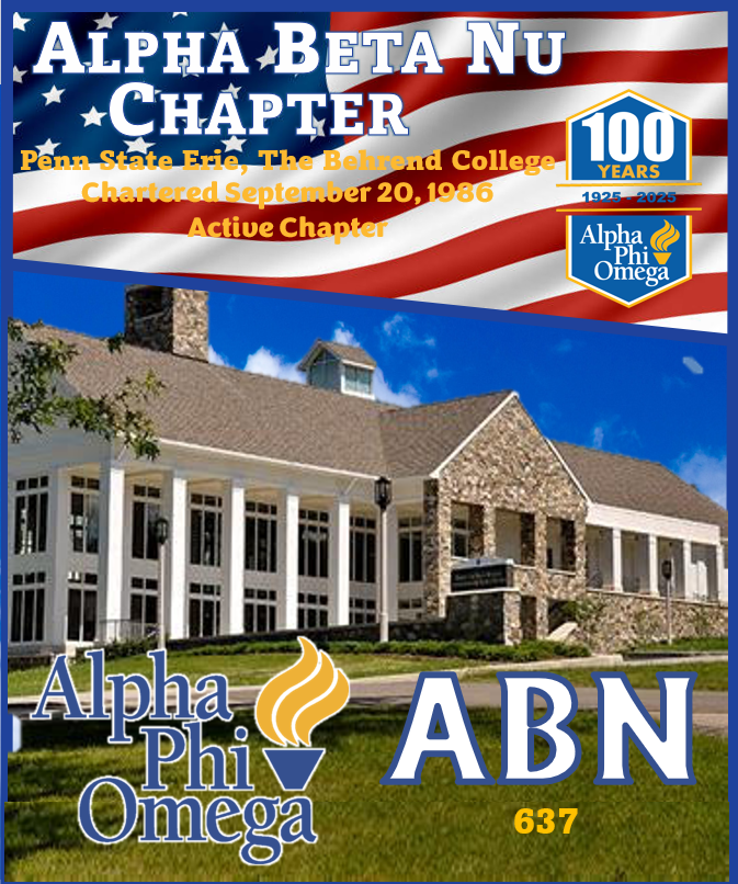 Centennial celebration patch of Alpha Beta Nu Chapter, at Penn State Erie, The Behrend College featuring Metzger Alumni Center. A portion of this purchase will directly support the chapter.