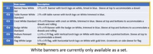 Home / Flags / White Banner Package (C) White Banner Package (C)$50.00 Out of stock Category: Flags Description Description This is the item for the white banner package (package c). It includes the below banners: Related products Blue Package Customized (B) $75.00 Read more Crest Blue Standard (A3) $17.00 Read more Traditional Banner Blue Standard (A1) $25.00 Read more White Package Customized (D) $75.00 Read more
